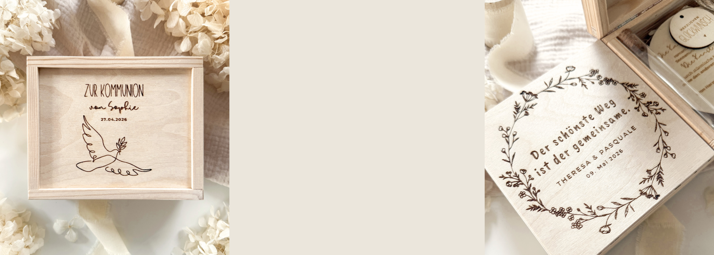 Jedes Produkt wird von uns in liebevoller Handarbeit gestaltet und individuell personalisiert – für besondere Momente, die in Erinnerung bleiben.