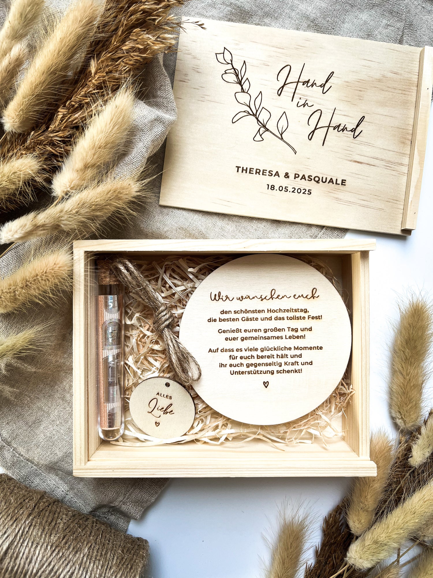 Personalisiertes Geldgeschenk aus Holz zur Hochzeit | Hände