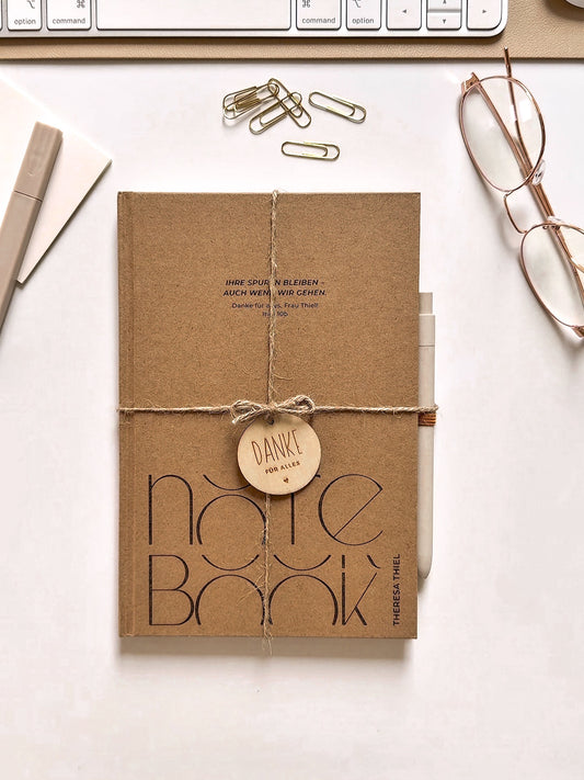 Personalisiertes Notizbuch zum Abschied Kollege | Notizbuch (A5) mit Gravur und Stift