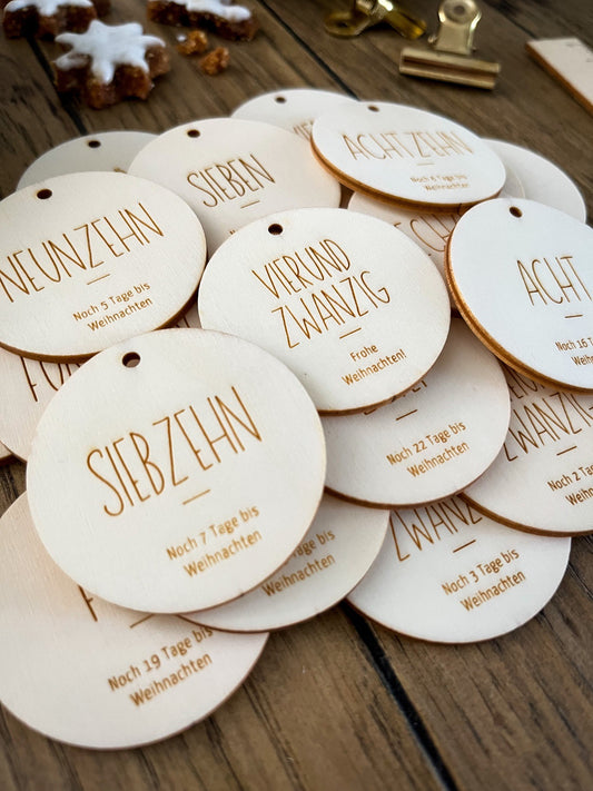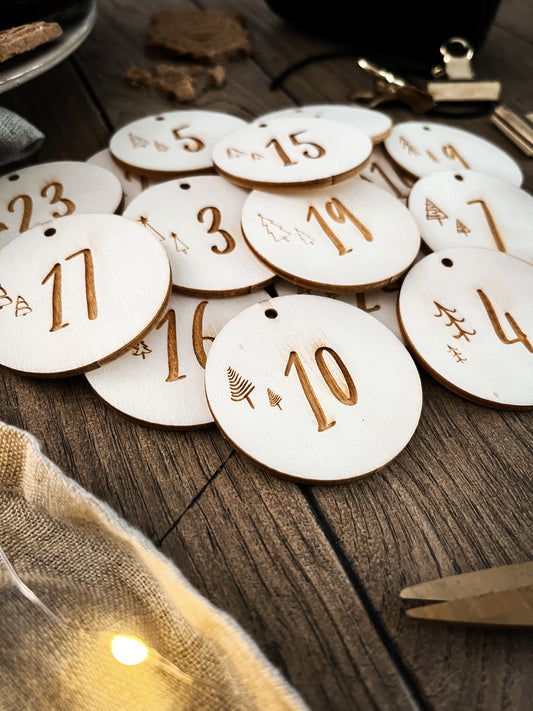 Adventskalenderzahlen | 24 Holzanhänger im minimalistischen Design