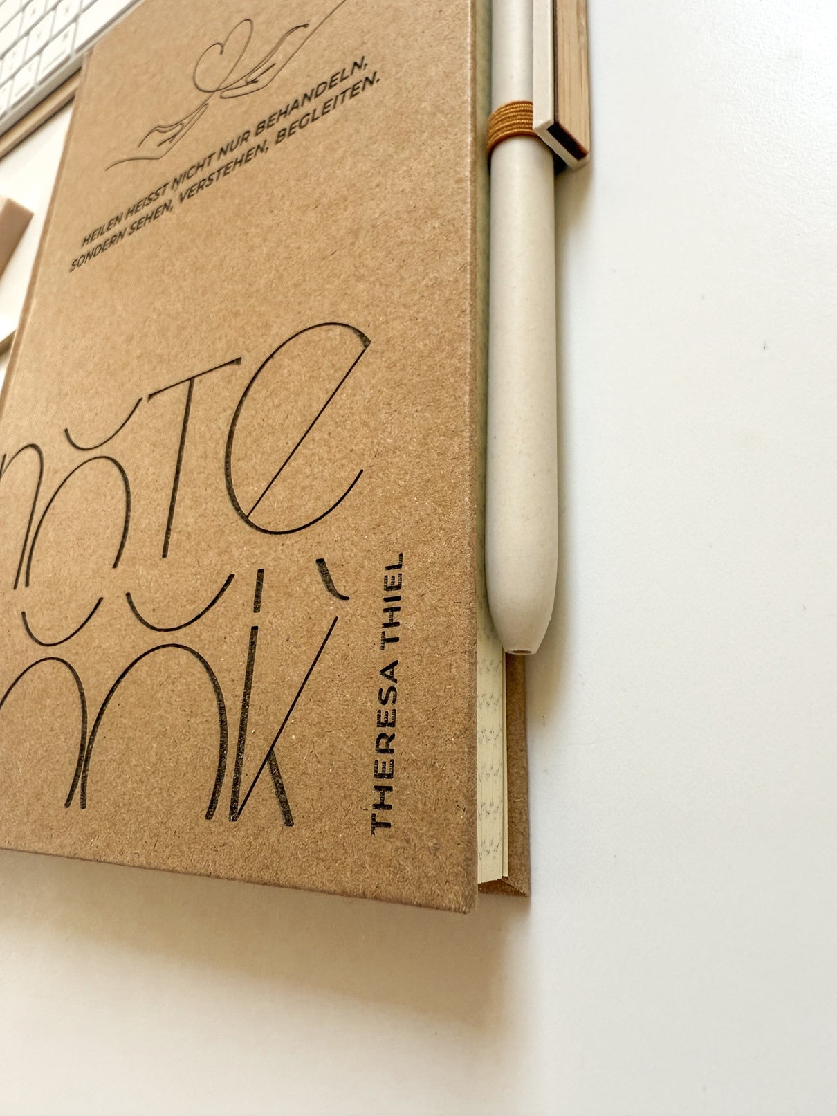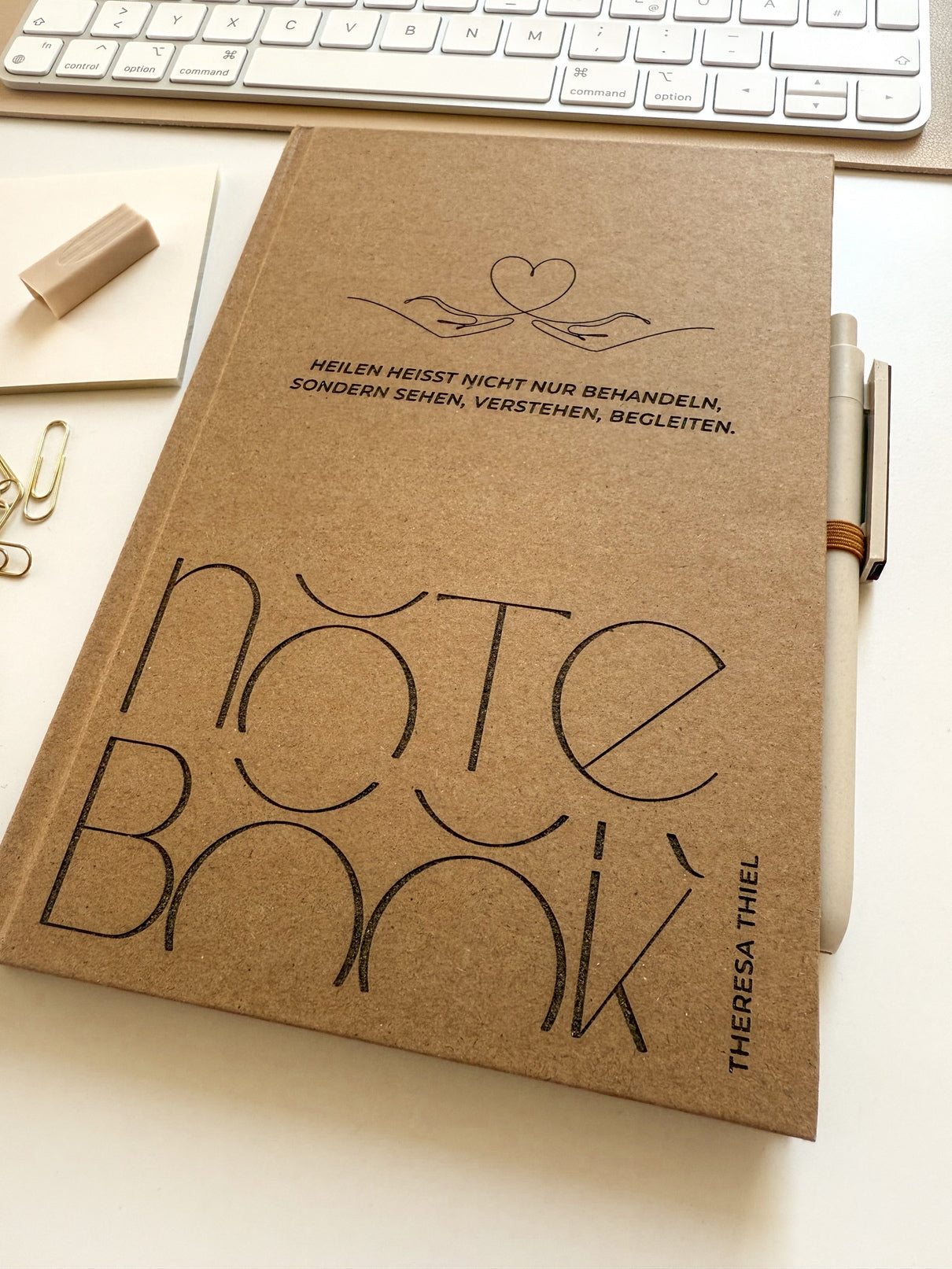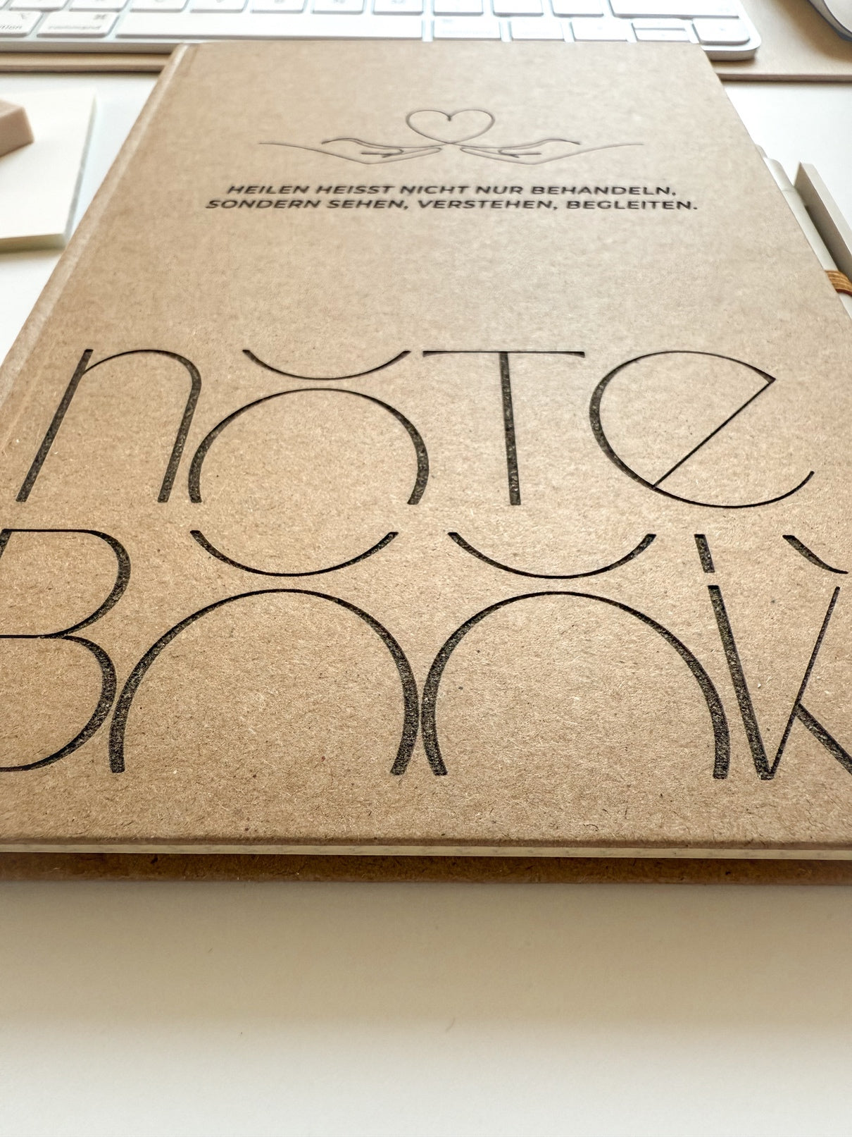 Personalisiertes Notizbuch als Dankeschön für Pflegekräfte, Ärzte & Therapeuten | Notizbuch (A5) mit Gravur und Stift