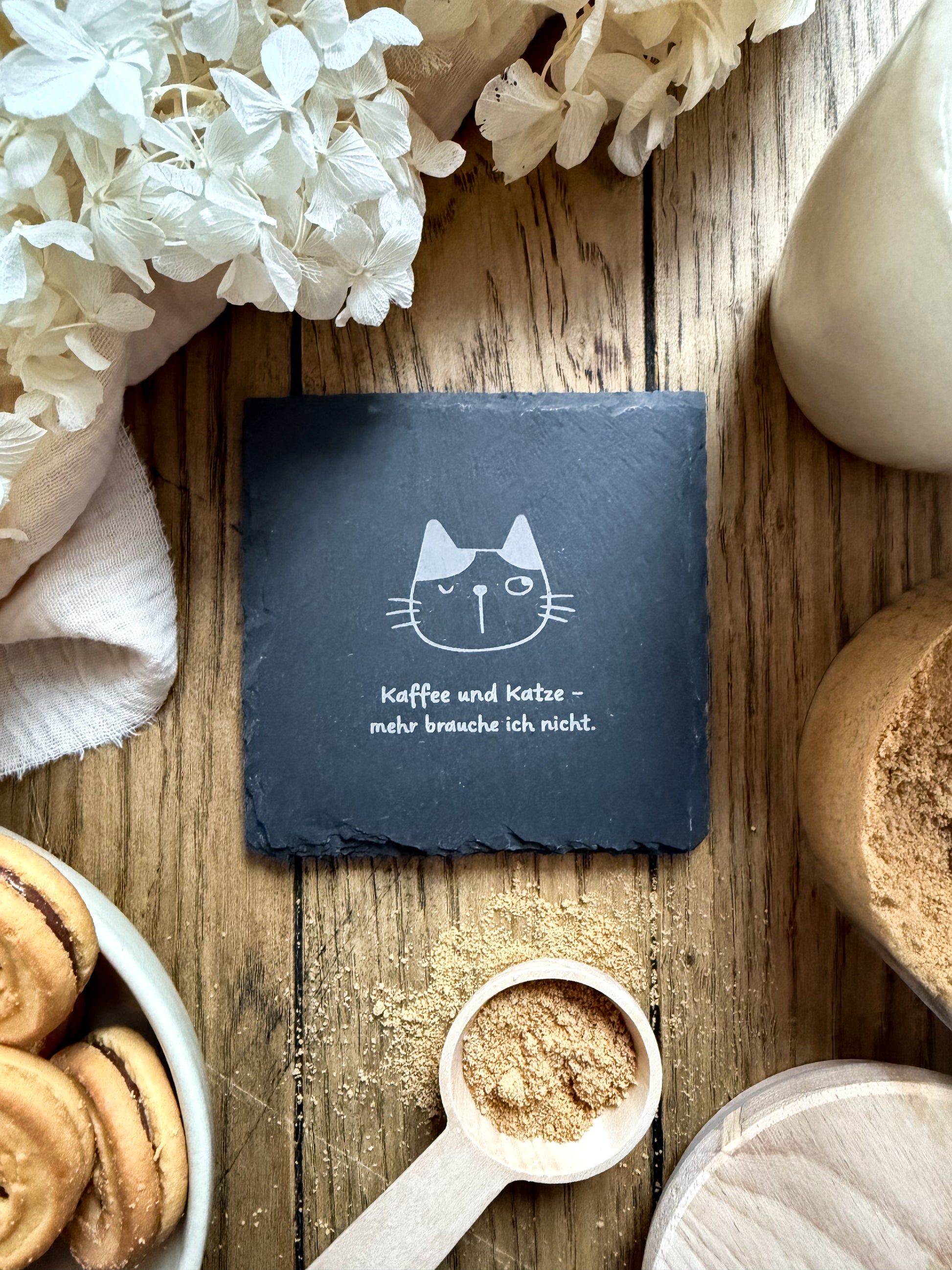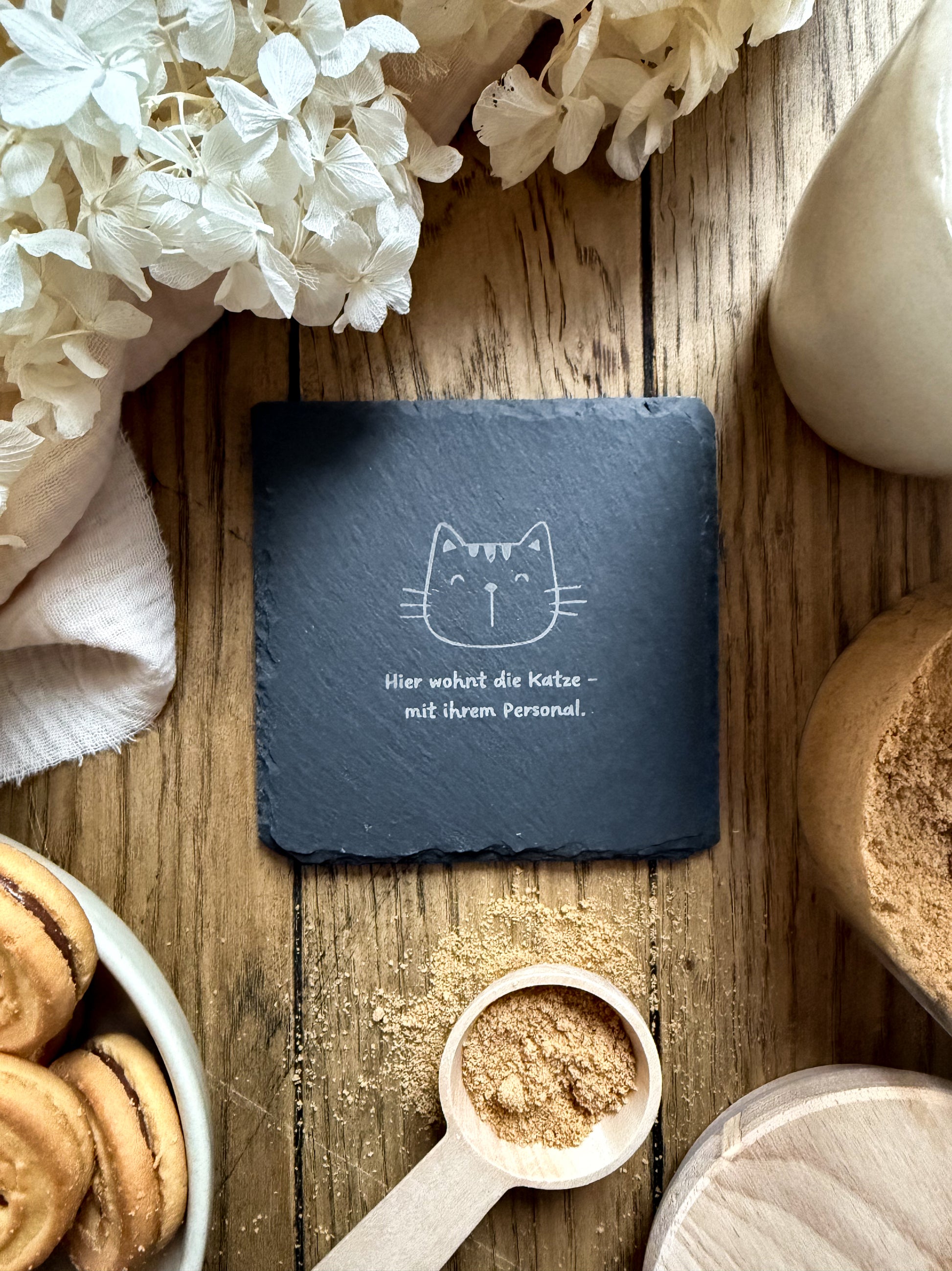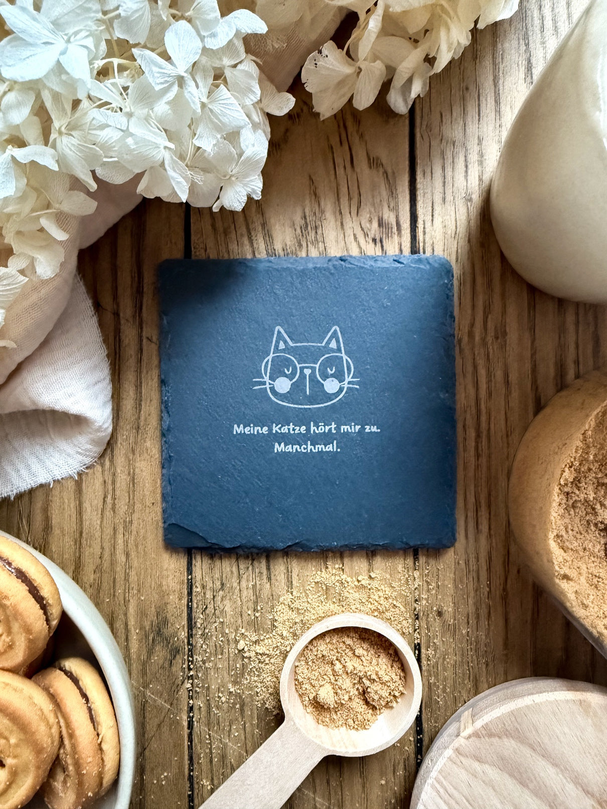 Dieses 4er-Set aus gravierten Schieferuntersetzern bringt nicht nur Stil auf den Tisch, sondern auch ein Schmunzeln ins Gesicht jedes Katzenliebhabers. Die detailreichen Katzenmotive und humorvollen Sprüche machen die Untersetzer zu einer charmanten Mischung aus witziger Deko und liebevoller Geschenkidee.